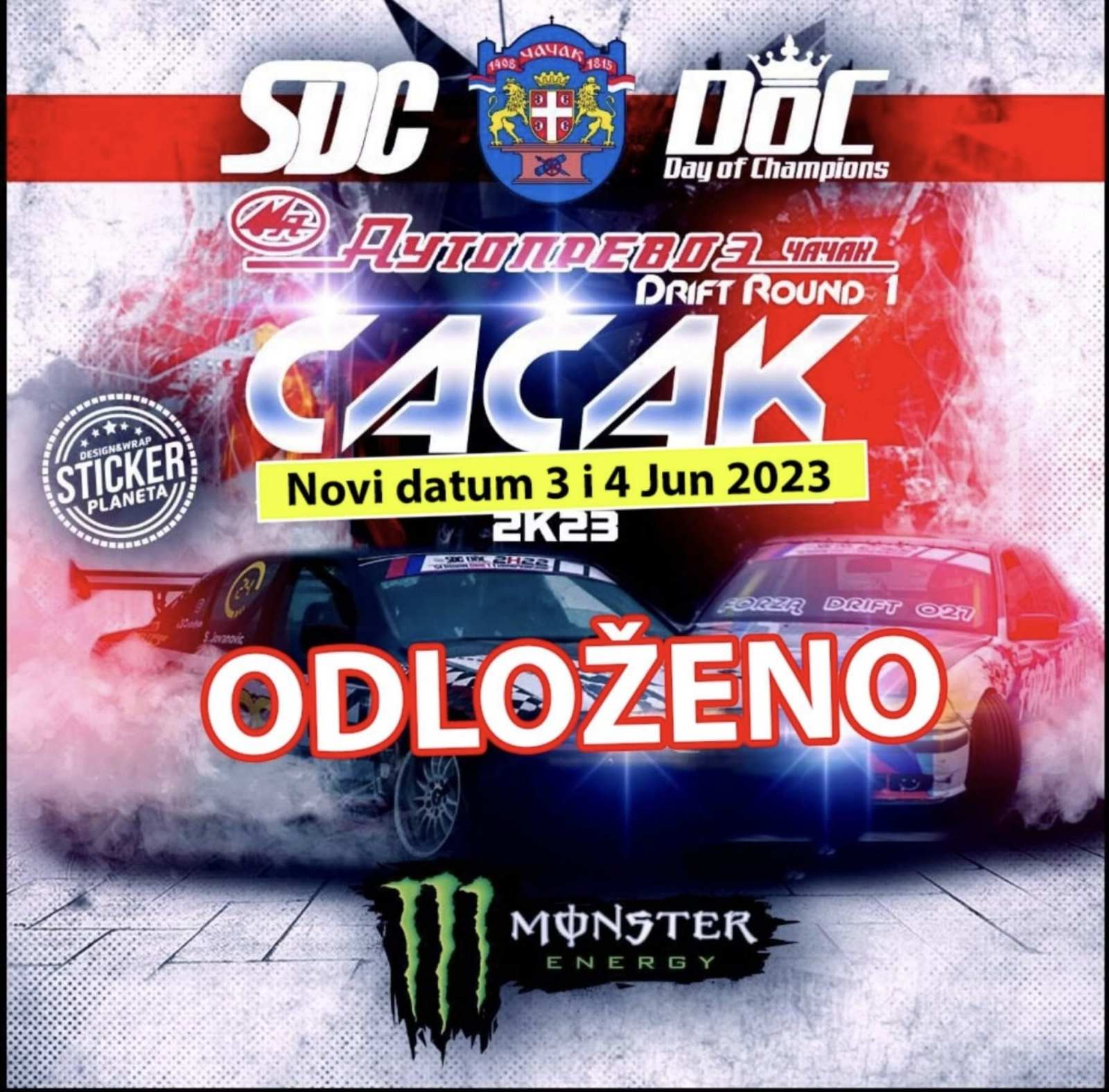 Zbog najavljene jako loše vremenske prognoze (očekuje se kiša oba dana), prva runda Drifta u Čačrku biće odgođena za sedam dana.