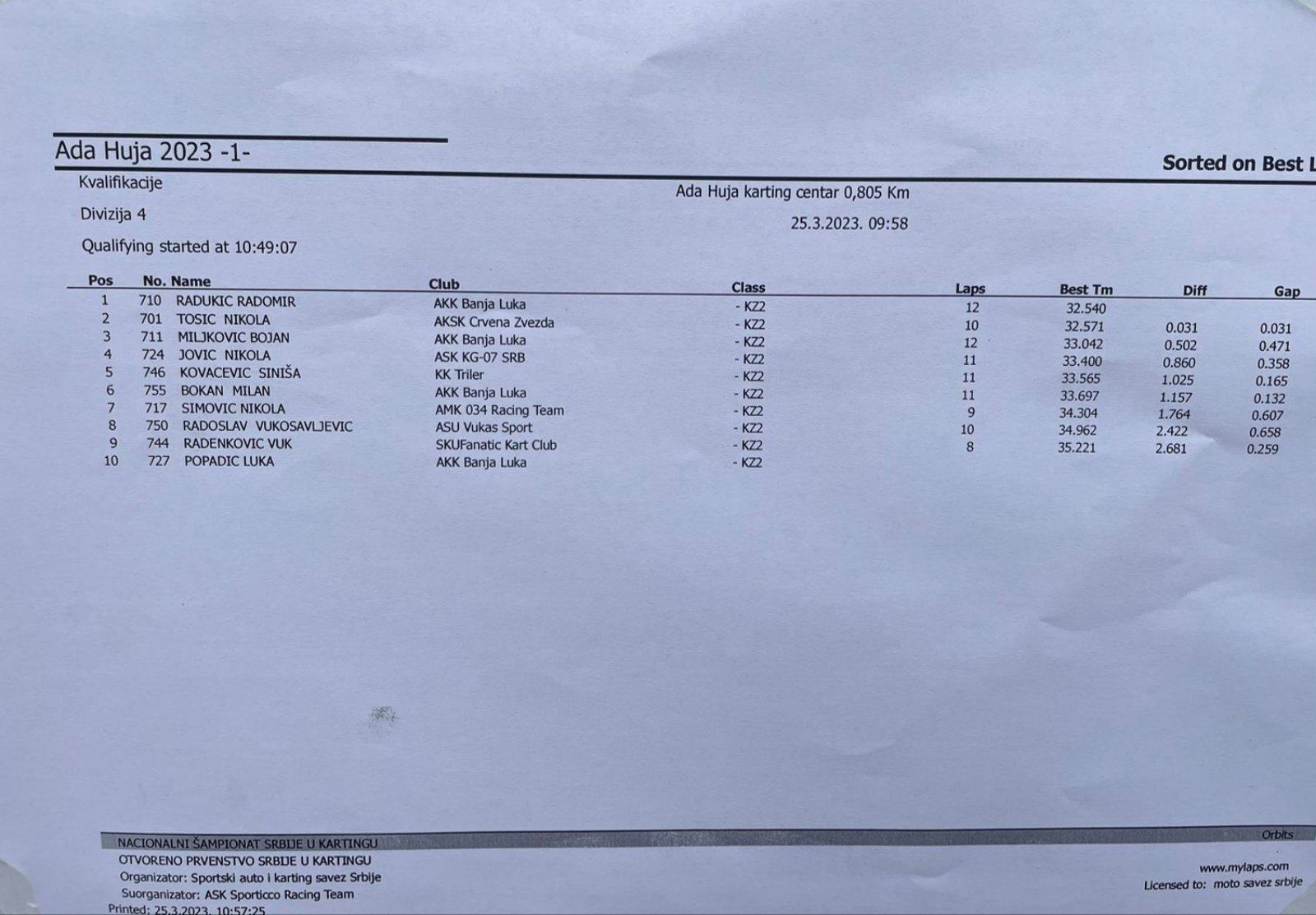 Dana 25.3.2023, na stazi Ada Huja u Beogradu, održana je karting trka Otvorenog prvenstva Srbije.